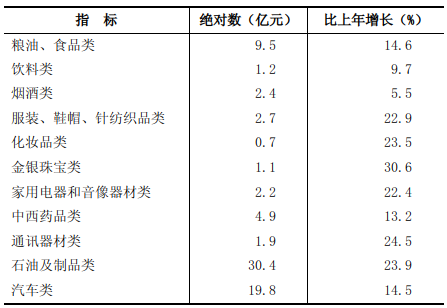 全年全市限额以上单位消费品零售额91.9亿元,增长20.9%。